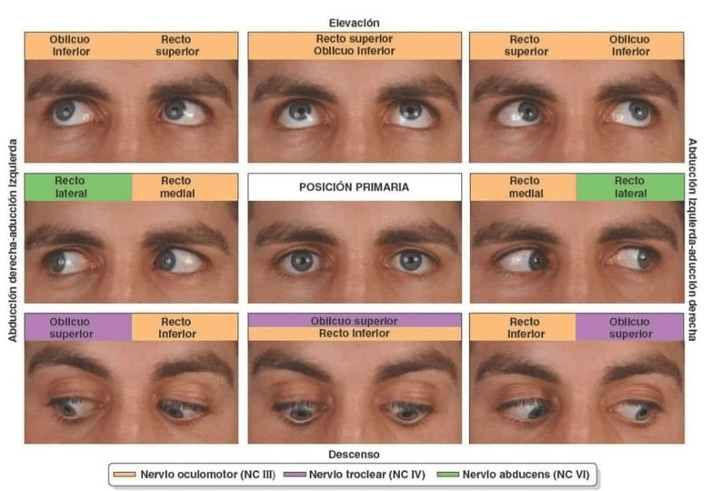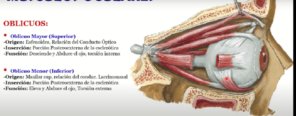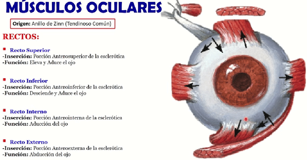 El músculo elevador del párpado no está relacionado con el globo ocular pero se trata aquí por compartir zona anatómica.