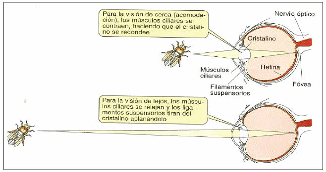 Los rayos de luz de los objetos lejanos son casi paralelos y no necesitan mucha refracción para enfocarlos.